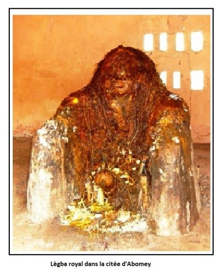 De toutes les divinités du panthéon vodou, manifestement, Lègba est la figure du Vodoun la plus familière, mais aussi la plus singulière. Dans un article précédent consacré à Lègba, j’avais relevé qu’il est la synthèse de multiples caractéristiques et fonctions plus ou moins contradictoires qui font de lui un vodoun singulier du panthéon vodoun. Traditionnellement Lègba est représenté par une bute de terre aux formes plus ou moins humaines avec souvent un phallus démesuré. Les représentations de lègba trainent partout. On l’aperçoit aux seuils des habitations, des lieux publiques et à tous les coins de rues dans les vieilles citées et les villages.
